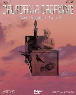 California Dreaming brings together five visual artists based in Stockholm, Sweden, who have individually responded to the idea of California; with all the desires and dreams shrouded in its name. The work has taken different routes; an internal mapping of sites of interests, an exploration of the dreams and magic created and exported from the area, reflections on current events and a desire to create change, an urge to let the viewer, however different from yourself, be mirrored in the work, and an exploration in shape and material of the immutable bonds between humanity, nature, and industrialization.